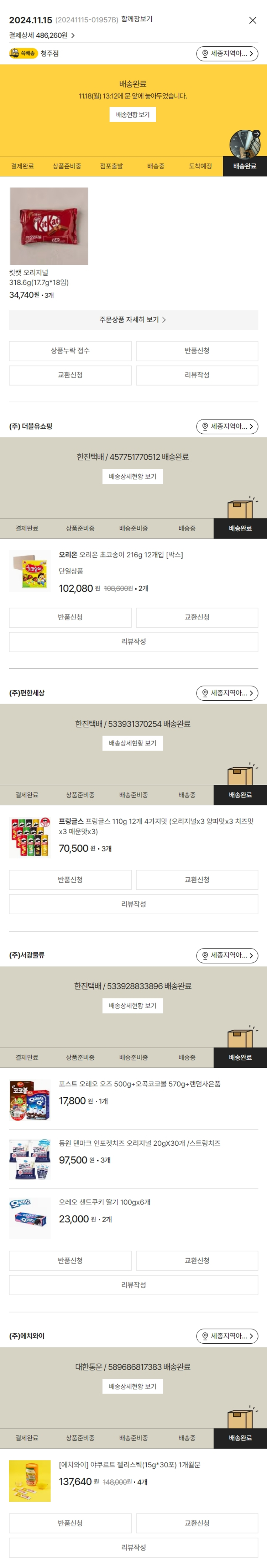 기부자님이 사용한 기부포인트 8,700원, 물품배송비 3,000원, 가격상승분 7,120원, 100원 미만 지원금 40원, 결제 수수료 11,834원, 기타 사업비는 행복나눔재단이 부담했습니다. (기부후기 발송시점에 최종 업데이트 됩니다.) 실제 쇼핑몰에서 확인되는 배송현황을 캡처한 내용입니다. 실시간 자료와는 차이가 있을 수 있습니다.