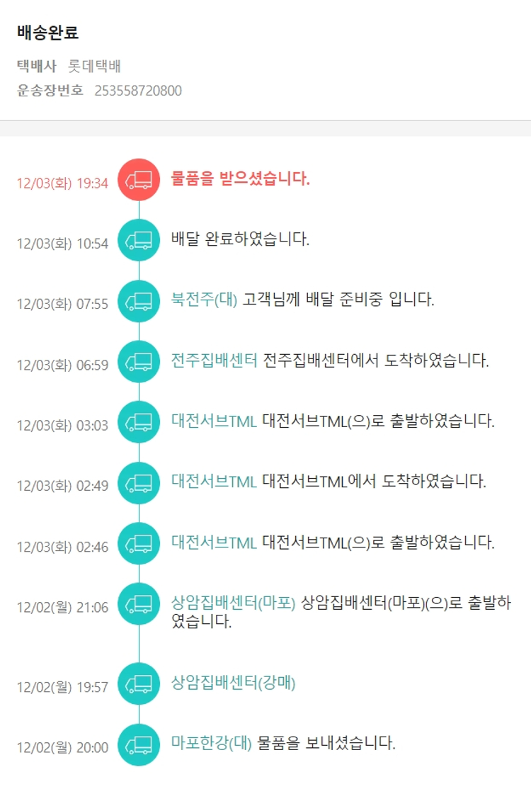 기부자님이 사용한 기부포인트 3,000원, 물품배송비 8,500원, 가격상승분 84원, 100원 미만 지원금 62원, 결제 수수료 13,399원, 기타 사업비는 행복나눔재단이 부담했습니다. (기부후기 발송시점에 최종 업데이트 됩니다.) 실제 쇼핑몰에서 확인되는 배송현황을 캡처한 내용입니다. 실시간 자료와는 차이가 있을 수 있습니다.