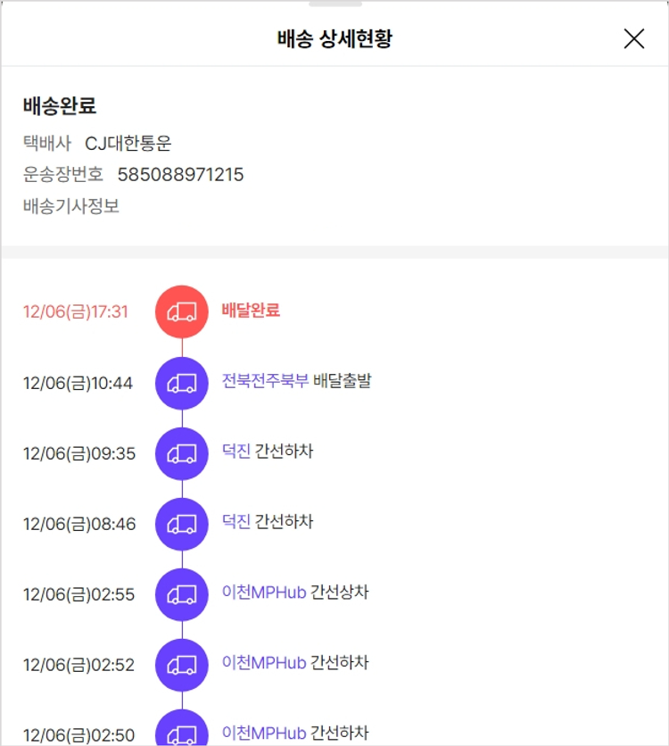 기부자님이 사용한 기부포인트 29,850원, 물품배송비 6,500원, 가격상승분 2,848원, 100원 미만 지원금 68원, 결제 수수료 15,504원, 기타 사업비는 행복나눔재단이 부담했습니다. (기부후기 발송시점에 최종 업데이트 됩니다.) 실제 쇼핑몰에서 확인되는 배송현황을 캡처한 내용입니다. 실시간 자료와는 차이가 있을 수 있습니다.