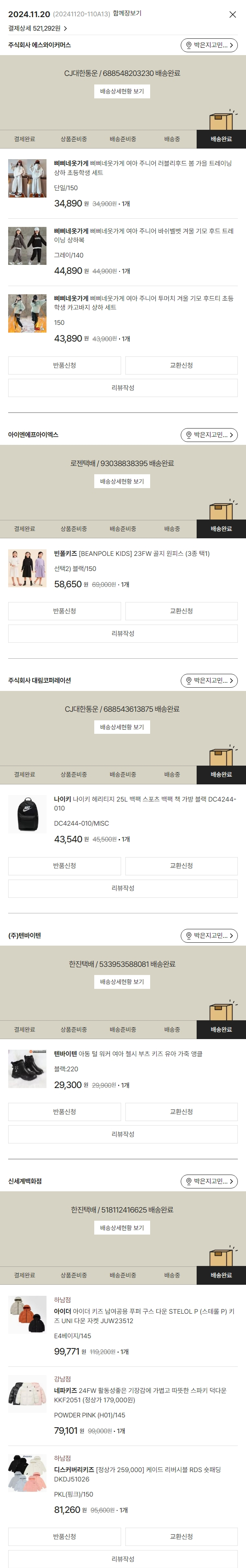 기부자님이 사용한 기부포인트 11,500원, 물품배송비 6,000원, 가격상승분 8,419원, 100원 미만 지원금 73원, 결제 수수료 13,776원, 기타 사업비는 행복나눔재단이 부담했습니다. (기부후기 발송시점에 최종 업데이트 됩니다.) 실제 쇼핑몰에서 확인되는 배송현황을 캡처한 내용입니다. 실시간 자료와는 차이가 있을 수 있습니다.