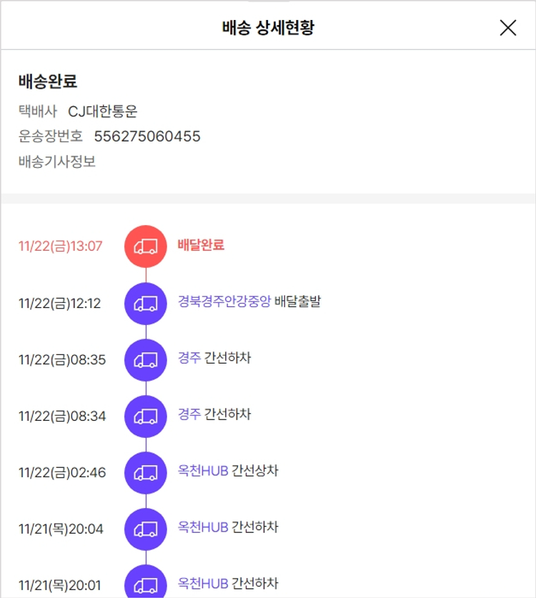 기부자님이 사용한 기부포인트 18,000원, 가격상승분 5,032원, 100원 미만 지원금 88원, 결제 수수료 13,116원, 기타 사업비는 행복나눔재단이 부담했습니다. (기부후기 발송시점에 최종 업데이트 됩니다.) 실제 쇼핑몰에서 확인되는 배송현황을 캡처한 내용입니다. 실시간 자료와는 차이가 있을 수 있습니다.