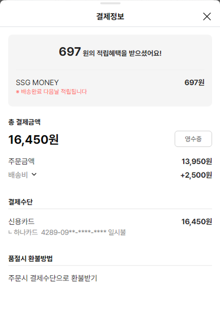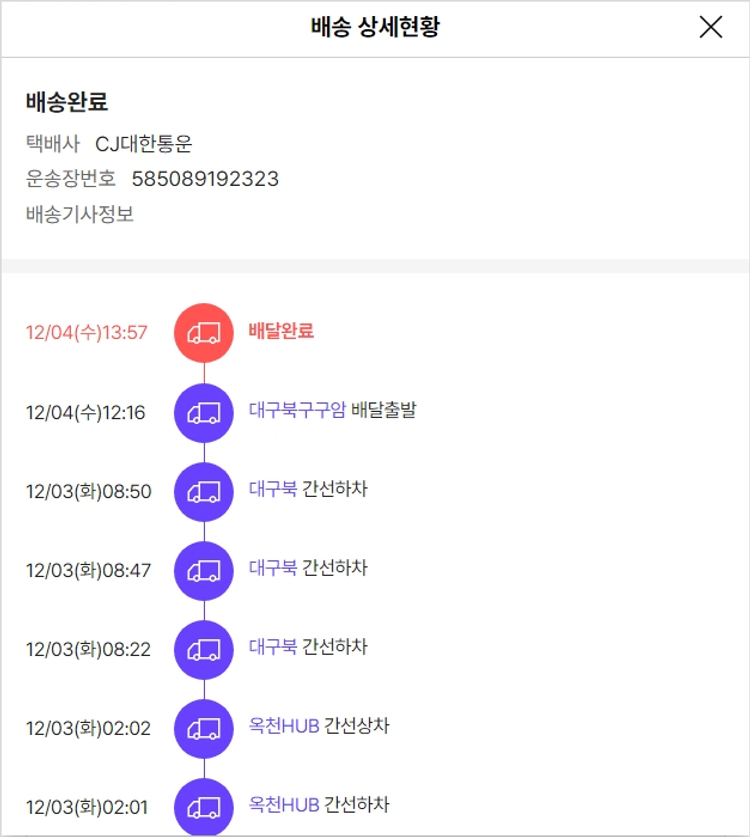 물품배송비 5,500원, 가격상승분 2,320원, 100원 미만 지원금 60원, 결제 수수료 12,515원, 기타 사업비는 행복나눔재단이 부담했습니다. (기부후기 발송시점에 최종 업데이트 됩니다.) 주문 건 중 품절 건 발생하여 2024-11-28 재주문했습니다. 실제 쇼핑몰에서 확인되는 배송현황을 캡처한 내용입니다. 실시간 자료와는 차이가 있을 수 있습니다.