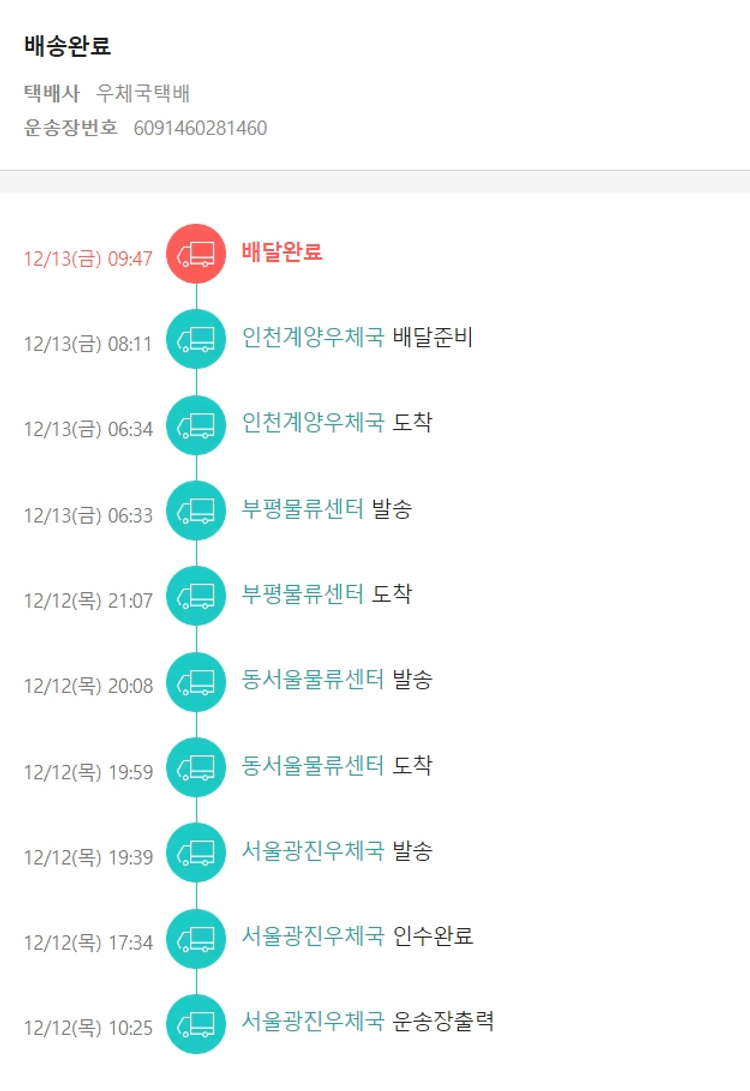 가격상승분 8,360원, 100원 미만 지원금 40원, 결제 수수료 13,127원, 기타 사업비는 행복나눔재단이 부담했습니다. (기부후기 발송시점에 최종 업데이트 됩니다.) 실제 쇼핑몰에서 확인되는 배송현황을 캡처한 내용입니다. 실시간 자료와는 차이가 있을 수 있습니다.