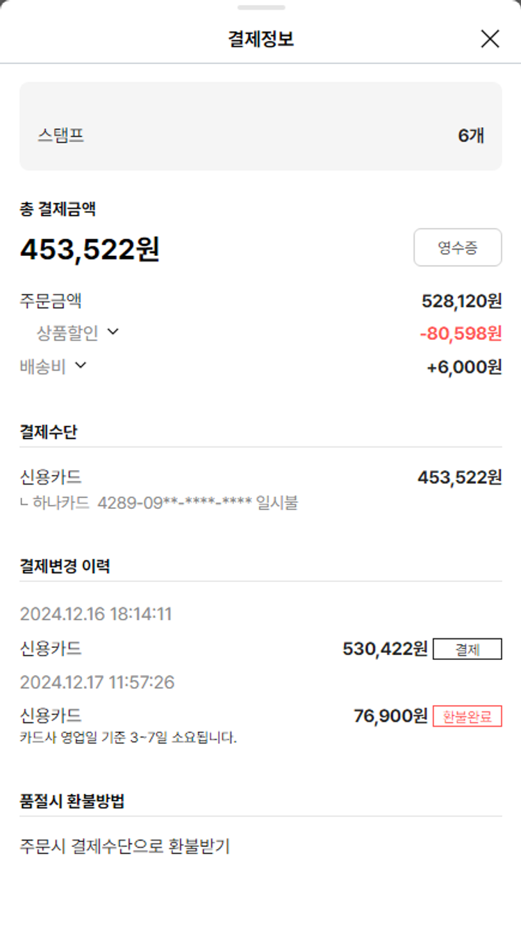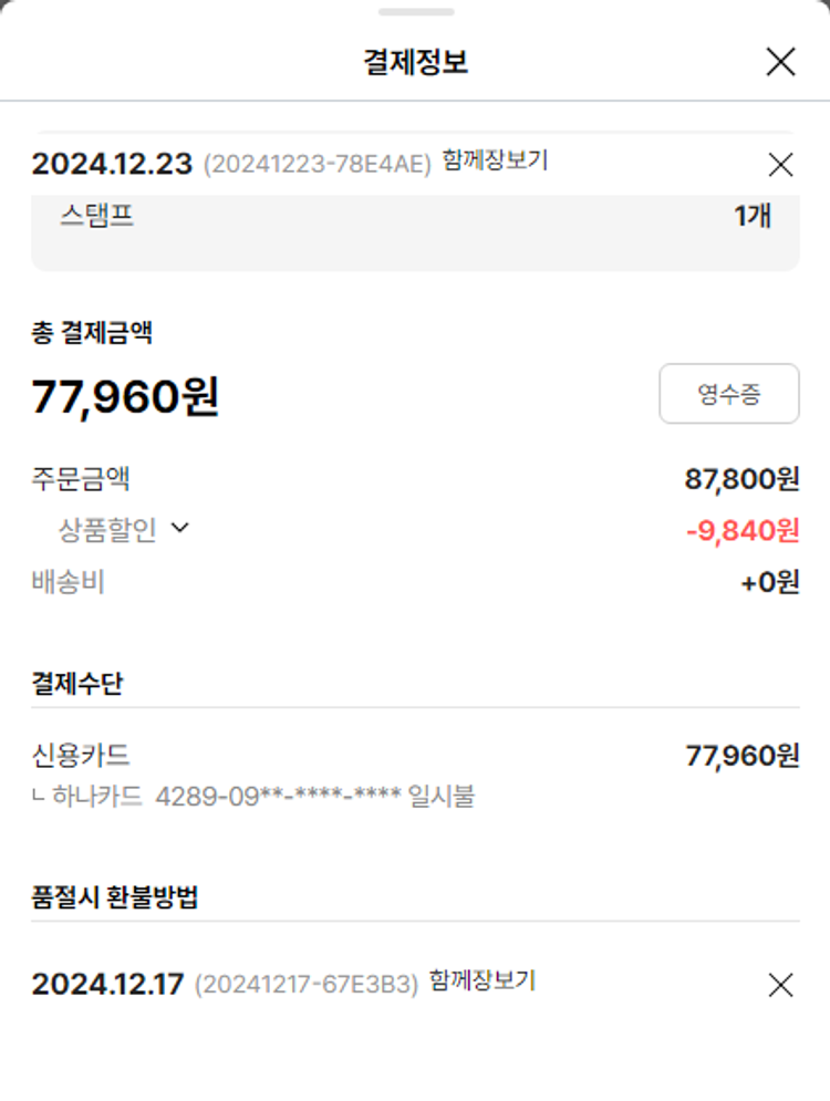 주문 건 중 품절 건 발생하여 2024-12-23 재주문했습니다.