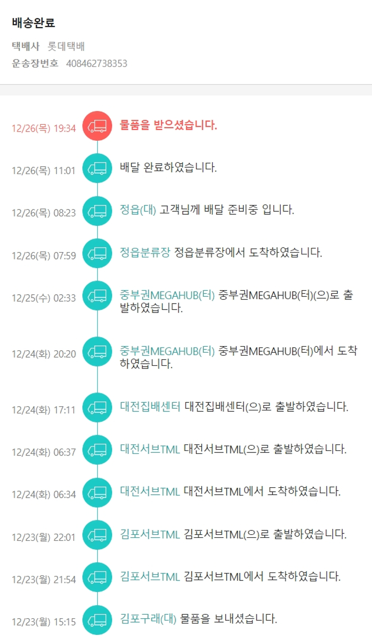 기부자님이 사용한 기부포인트 68,400원, 가격상승분 490원, 100원 미만 지원금 20원, 결제 수수료 11,672원, 기타 사업비는 행복나눔재단이 부담했습니다. (기부후기 발송시점에 최종 업데이트 됩니다.) 실제 쇼핑몰에서 확인되는 배송현황을 캡처한 내용입니다. 실시간 자료와는 차이가 있을 수 있습니다.