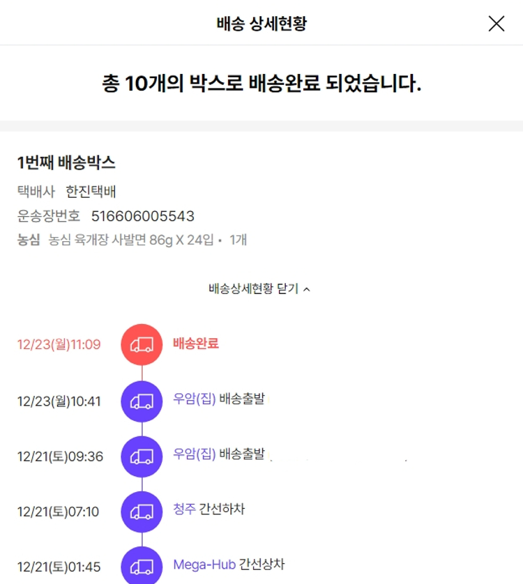 기부자님이 사용한 기부포인트 42,500원, 100원 미만 지원금 20원, 결제 수수료 14,558원, 기타 사업비는 행복나눔재단이 부담했습니다. (기부후기 발송시점에 최종 업데이트 됩니다.) 실제 쇼핑몰에서 확인되는 배송현황을 캡처한 내용입니다. 실시간 자료와는 차이가 있을 수 있습니다.