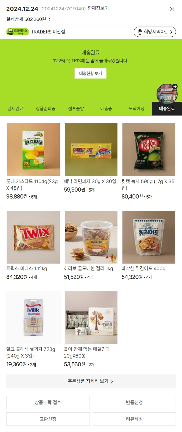 가격상승분 3,000원, 100원 미만 지원금 60원, 기타 사업비는 행복나눔재단이 부담했습니다. (기부후기 발송시점에 최종 업데이트 됩니다.) 실제 쇼핑몰에서 확인되는 배송현황을 캡처한 내용입니다. 실시간 자료와는 차이가 있을 수 있습니다.