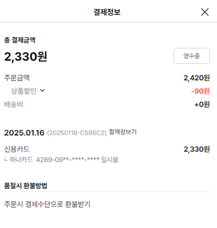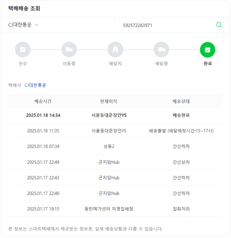 기부자님이 사용한 기부포인트 120,300원, 물품배송비 5,500원, 가격상승분 958원, 100원 미만 지원금 36원, 결제 수수료 19,888원, 기타 사업비는 행복나눔재단이 부담했습니다. (기부후기 발송시점에 최종 업데이트 됩니다.) 주문 상품 중 품절 건 있어 2025-01-16 재주문하였습니다. 실제 쇼핑몰에서 확인되는 배송현황을 캡처한 내용입니다. 실시간 자료와는 차이가 있을 수 있습니다.