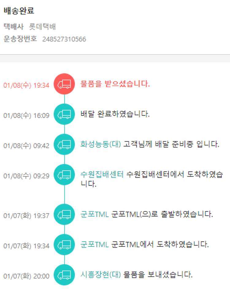 가격상승분 7,570원, 100원 미만 지원금 30원, 기타 사업비는 행복나눔재단이 부담했습니다. (기부후기 발송시점에 최종 업데이트 됩니다.) 실제 쇼핑몰에서 확인되는 배송현황을 캡처한 내용입니다. 실시간 자료와는 차이가 있을 수 있습니다.