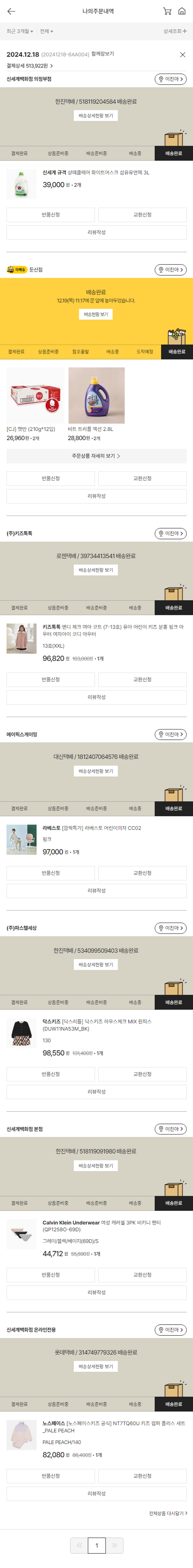 기부자님이 사용한 기부포인트 13,000원, 가격상승분 9,243원, 100원 미만 지원금 79원, 결제 수수료 12,793원, 기타 사업비는 행복나눔재단이 부담했습니다. (기부후기 발송시점에 최종 업데이트 됩니다.) 솜이 빠져 해진 코트가 부츠보다 급한 상황이라 담당 선생님과 논의 후 물품 일부 변경되었습니다. 실제 쇼핑몰에서 확인되는 배송현황을 캡처한 내용입니다. 실시간 자료와는 차이가 있을 수 있습니다.