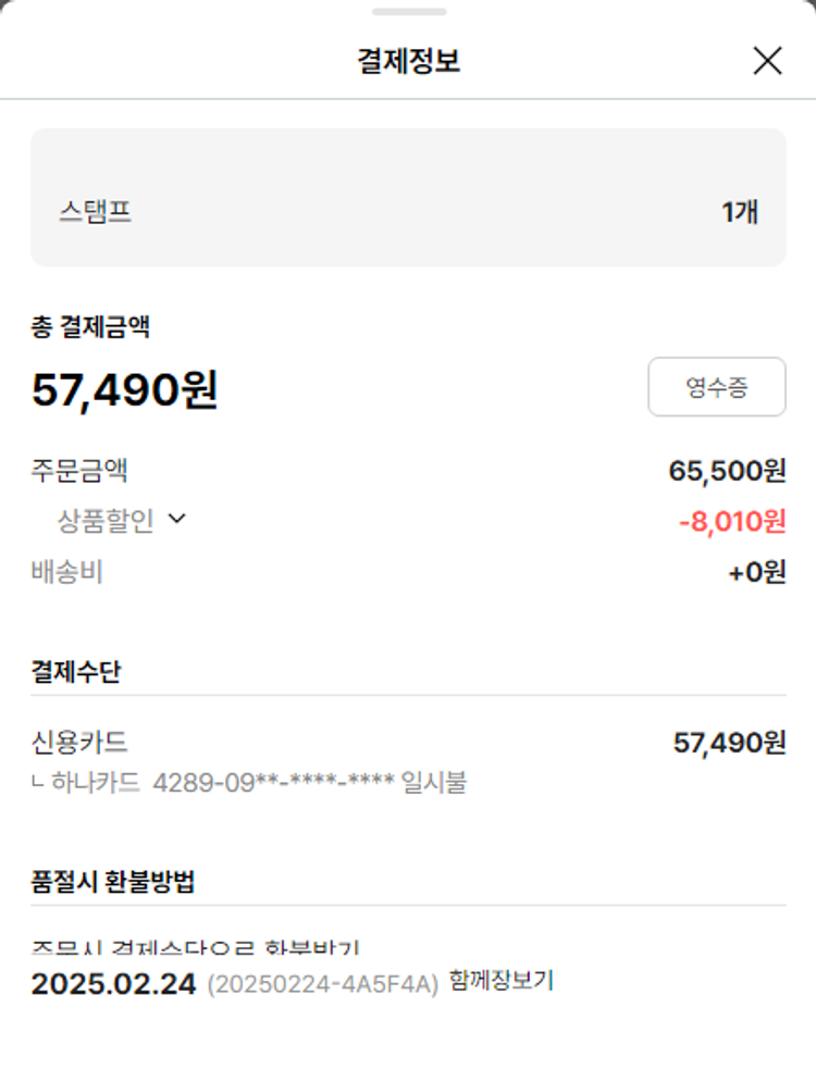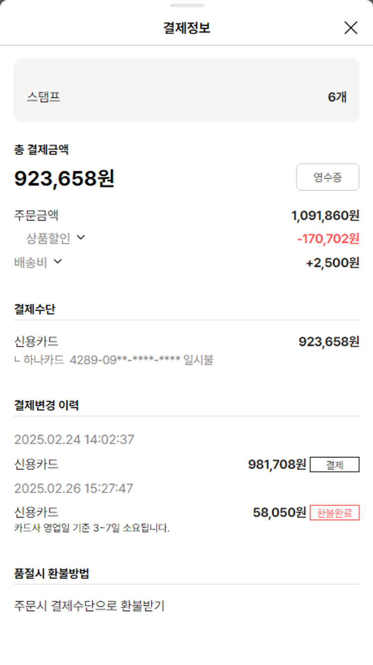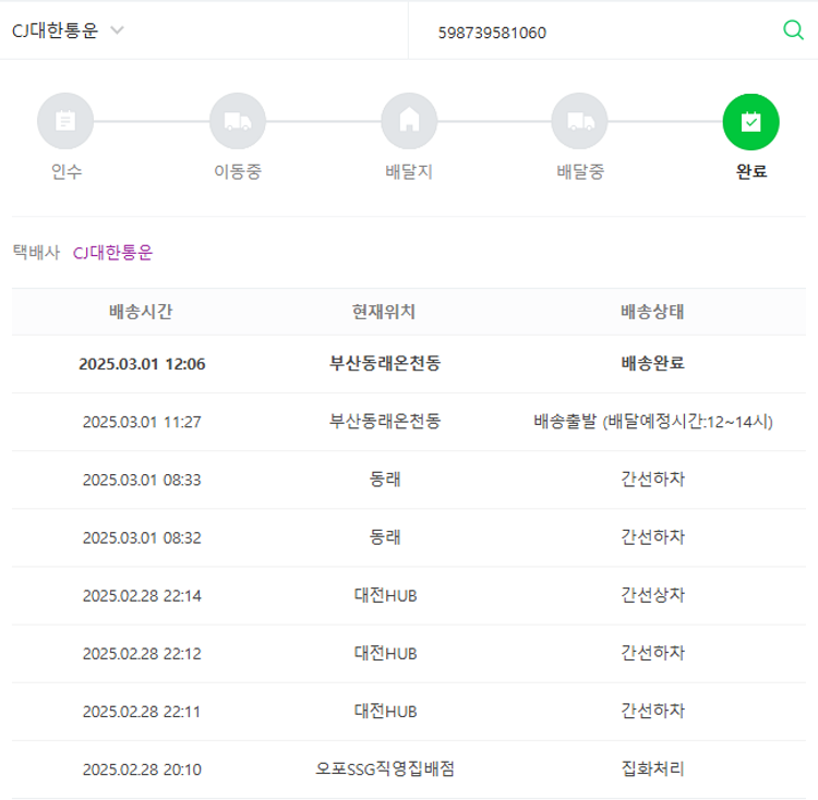 물품배송비 2,500원, 가격상승분 1,300원, 100원 미만 지원금 48원, 기타 사업비는 행복나눔재단이 부담했습니다. (기부후기 발송시점에 최종 업데이트 됩니다.) 주문 상품 중 품절 발생하여 2025-02-26 재주문하였습니다. 실제 쇼핑몰에서 확인되는 배송현황을 캡처한 내용입니다. 실시간 자료와는 차이가 있을 수 있습니다.
