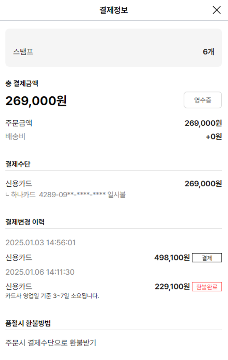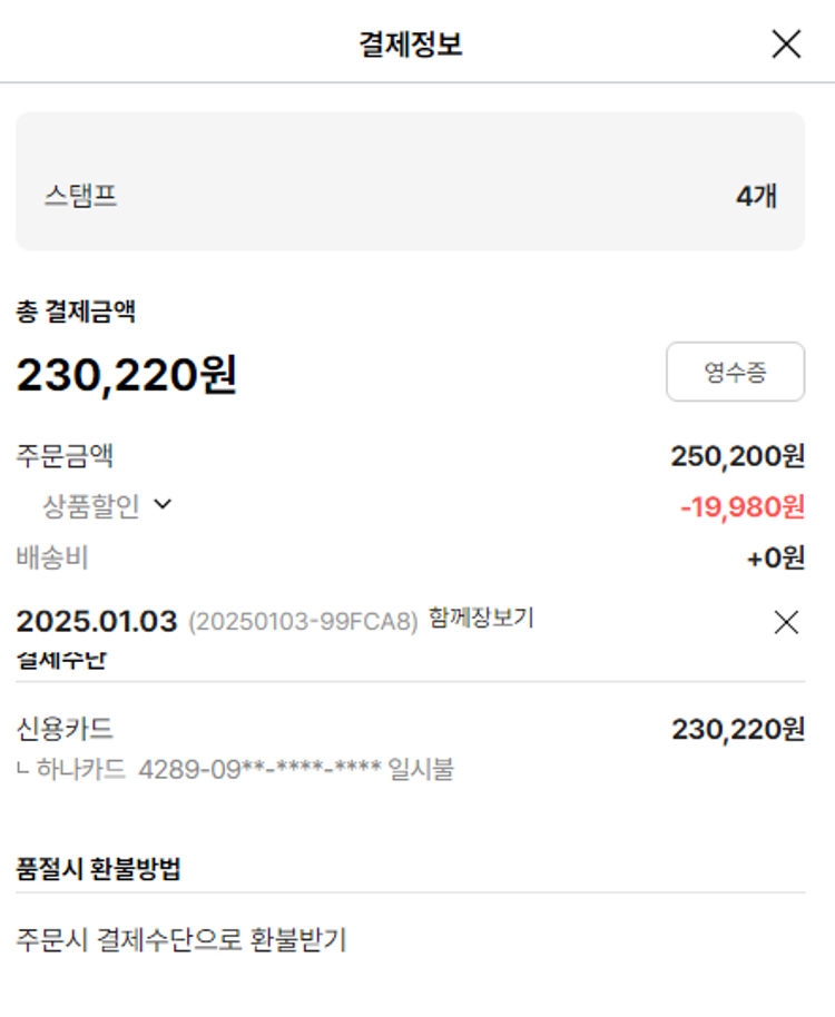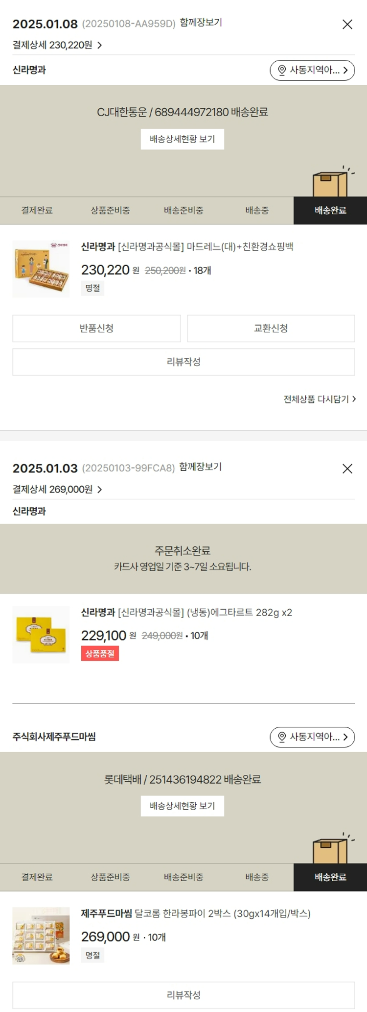 가격상승분 1,120원, 기타 사업비는 행복나눔재단이 부담했습니다. (기부후기 발송시점에 최종 업데이트 됩니다.) 주문 건 중 품절 건 발생하여 2025-01-08 재주문했습니다. 실제 쇼핑몰에서 확인되는 배송현황을 캡처한 내용입니다. 실시간 자료와는 차이가 있을 수 있습니다.