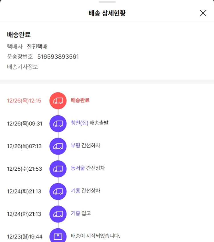 기부자님이 사용한 기부포인트 29,500원, 물품배송비 5,400원, 가격상승분 180원, 100원 미만 지원금 80원, 결제 수수료 12,023원, 기타 사업비는 행복나눔재단이 부담했습니다. (기부후기 발송시점에 최종 업데이트 됩니다.) 실제 쇼핑몰에서 확인되는 배송현황을 캡처한 내용입니다. 실시간 자료와는 차이가 있을 수 있습니다.