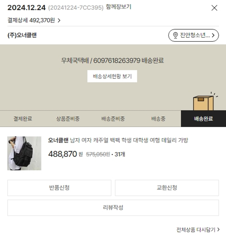 물품배송비 3,500원, 100원 미만 지원금 70원, 결제 수수료 12,366원, 기타 사업비는 행복나눔재단이 부담했습니다. (기부후기 발송시점에 최종 업데이트 됩니다.) 실제 쇼핑몰에서 확인되는 배송현황을 캡처한 내용입니다. 실시간 자료와는 차이가 있을 수 있습니다.