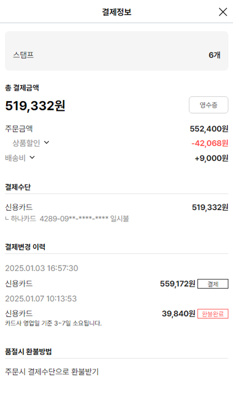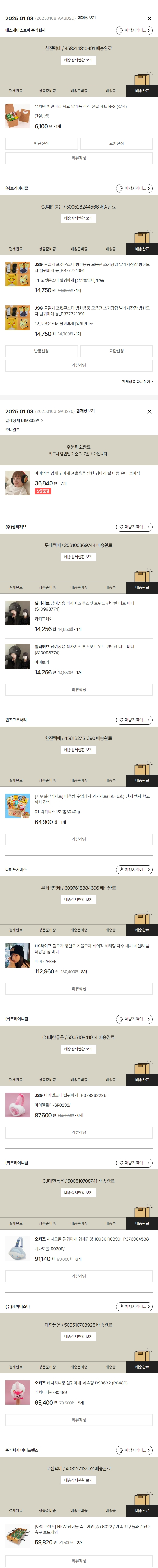 물품배송비 9,000원, 가격상승분 342원, 100원 미만 지원금 90원, 기타 사업비는 행복나눔재단이 부담했습니다. (기부후기 발송시점에 최종 업데이트 됩니다.) 주문 건 중 품절 건 발생하여 2025-01-08 재주문했습니다. 실제 쇼핑몰에서 확인되는 배송현황을 캡처한 내용입니다. 실시간 자료와는 차이가 있을 수 있습니다.