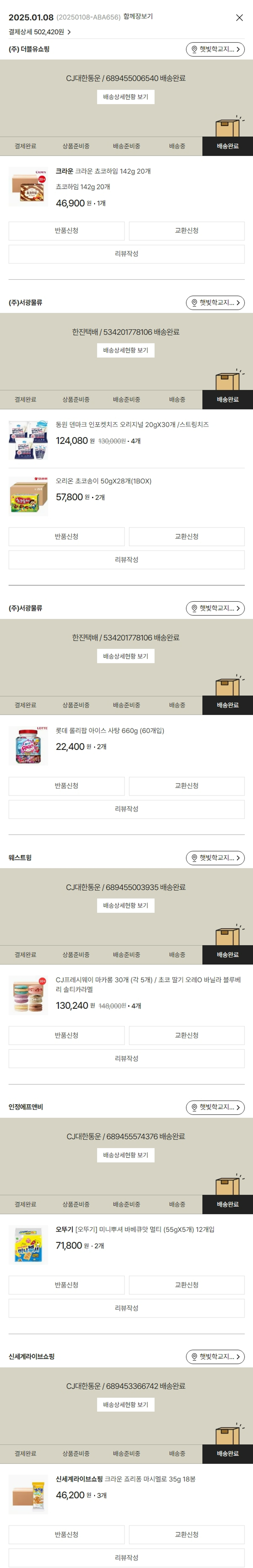 기부자님이 사용한 기부포인트 23,000원, 물품배송비 3,000원, 가격상승분 2,520원, 결제 수수료 11,990원, 기타 사업비는 행복나눔재단이 부담했습니다. (기부후기 발송시점에 최종 업데이트 됩니다.) 실제 쇼핑몰에서 확인되는 배송현황을 캡처한 내용입니다. 실시간 자료와는 차이가 있을 수 있습니다.