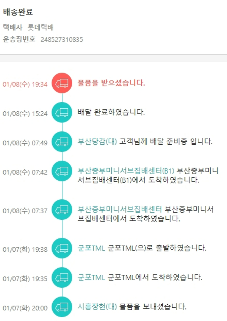 가격상승분 14,570원, 100원 미만 지원금 40원, 기타 사업비는 행복나눔재단이 부담했습니다. (기부후기 발송시점에 최종 업데이트 됩니다.) 실제 쇼핑몰에서 확인되는 배송현황을 캡처한 내용입니다. 실시간 자료와는 차이가 있을 수 있습니다.