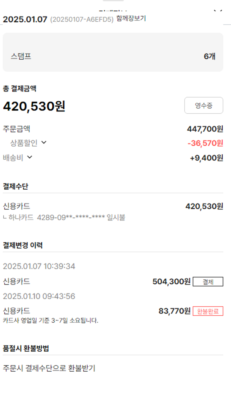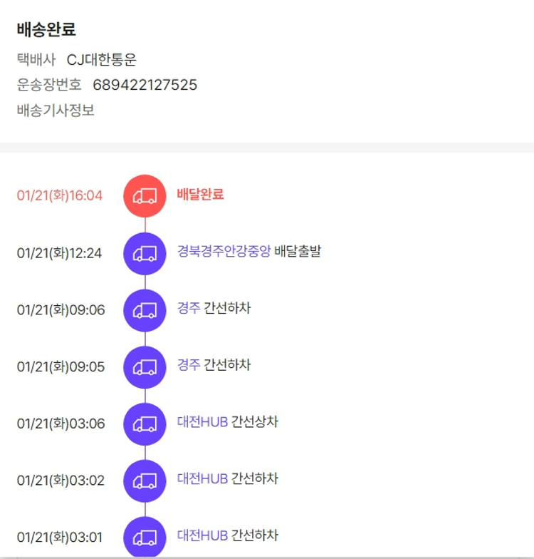 기부자님이 사용한 기부포인트 3,000원, 물품배송비 12,100원, 가격상승분 13,510원, 100원 미만 지원금 50원, 결제 수수료 13,387원, 기타 사업비는 행복나눔재단이 부담했습니다. (기부후기 발송시점에 최종 업데이트 됩니다.) 품절 상품 발생하여 2025-01-10 재주문하였습니다. 실제 쇼핑몰에서 확인되는 배송현황을 캡처한 내용입니다. 실시간 자료와는 차이가 있을 수 있습니다.
