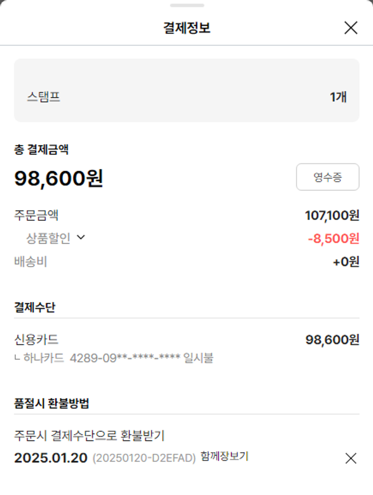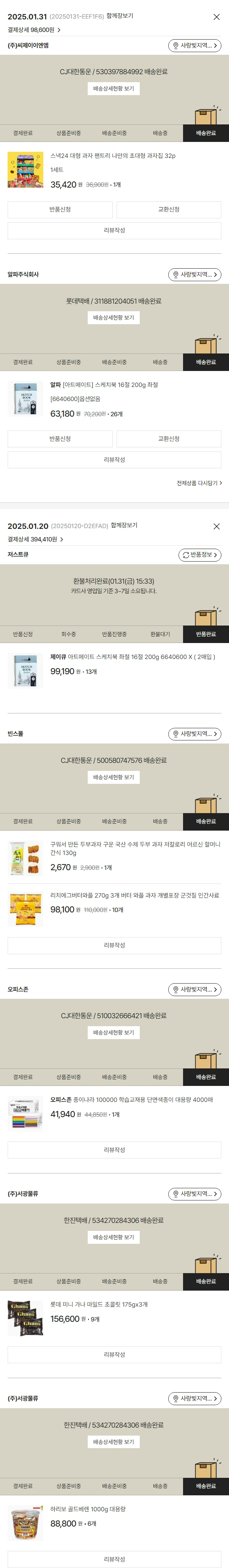 기부자님이 사용한 기부포인트 3,000원, 물품배송비 6,300원, 가격상승분 460원, 100원 미만 지원금 50원, 결제 수수료 12,850원, 기타 사업비는 행복나눔재단이 부담했습니다. (기부후기 발송시점에 최종 업데이트 됩니다.) 주문 상품 중 품절 발생하여 2025-01-31 재주문하였습니다. 실제 쇼핑몰에서 확인되는 배송현황을 캡처한 내용입니다. 실시간 자료와는 차이가 있을 수 있습니다.