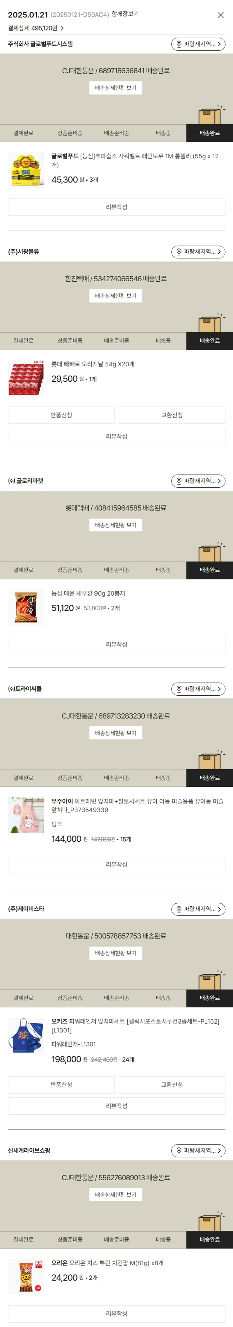 기부자님이 사용한 기부포인트 41,000원, 물품배송비 3,000원, 100원 미만 지원금 20원, 결제 수수료 14,095원, 기타 사업비는 행복나눔재단이 부담했습니다. (기부후기 발송시점에 최종 업데이트 됩니다.) 실제 쇼핑몰에서 확인되는 배송현황을 캡처한 내용입니다. 실시간 자료와는 차이가 있을 수 있습니다.