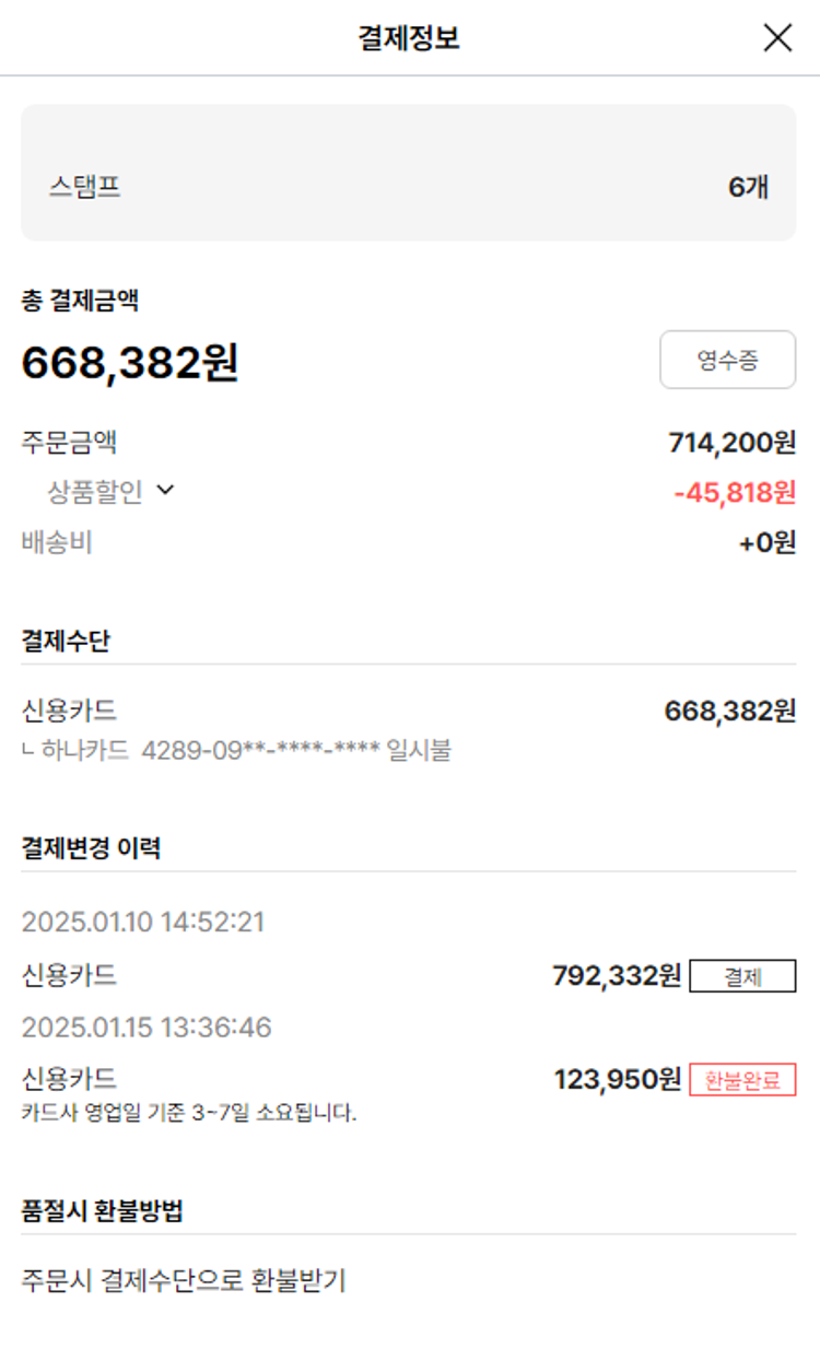 기부자님이 사용한 기부포인트 17,250원, 물품배송비 4,000원, 가격상승분 2,590원, 100원 미만 지원금 82원, 결제 수수료 22,255원, 기타 사업비는 행복나눔재단이 부담했습니다. (기부후기 발송시점에 최종 업데이트 됩니다.) 주문 상품 중 품절 건 발생하여 2025-01-15 재주문하였습니다. 실제 쇼핑몰에서 확인되는 배송현황을 캡처한 내용입니다. 실시간 자료와는 차이가 있을 수 있습니다.