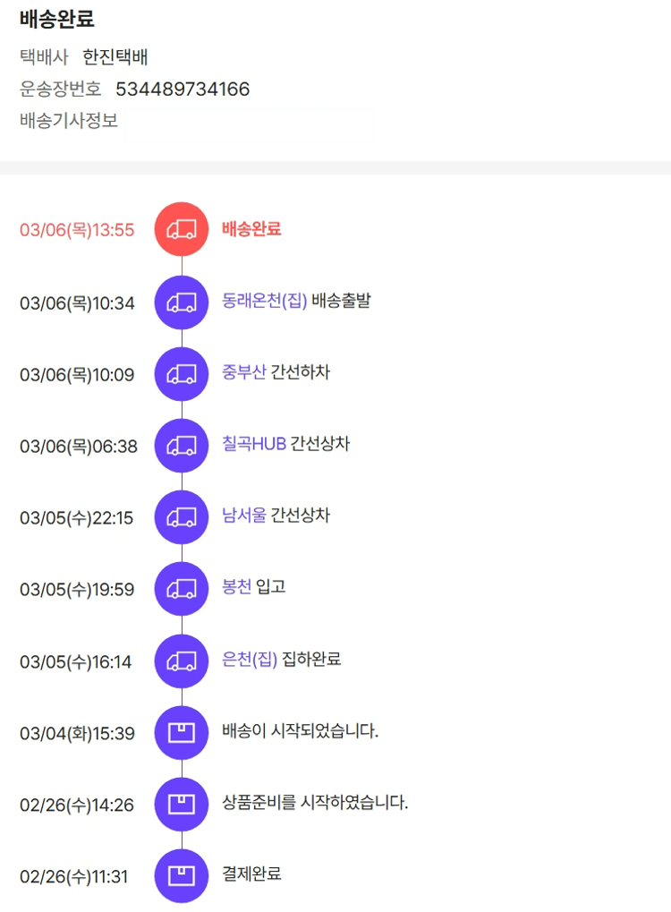 물품배송비 3,500원, 가격상승분 5,903원, 100원 미만 지원금 43원, 기타 사업비는 행복나눔재단이 부담했습니다. (기부후기 발송시점에 최종 업데이트 됩니다.) 주문 건 중 품절 건 발생하여 2025-02-28 재주문했습니다. 실제 쇼핑몰에서 확인되는 배송현황을 캡처한 내용입니다. 실시간 자료와는 차이가 있을 수 있습니다.