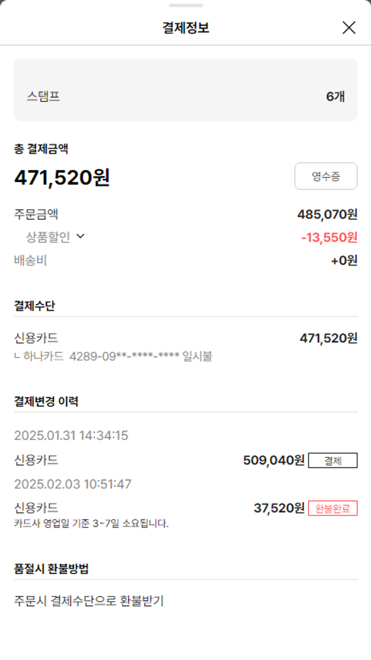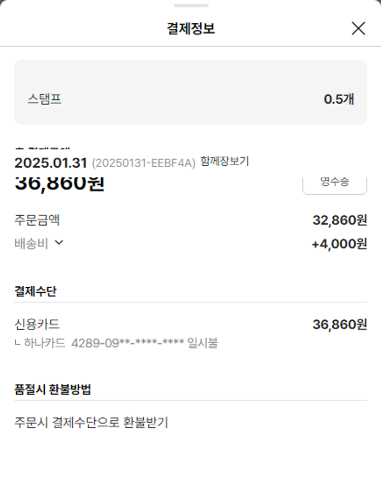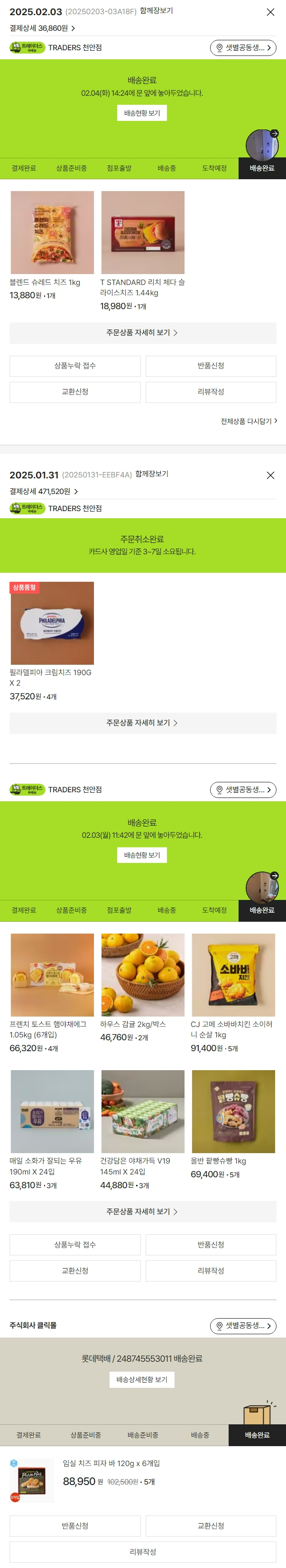 물품배송비 4,000원, 가격상승분 6,790원, 100원 미만 지원금 90원, 결제 수수료 12,587원, 기타 사업비는 행복나눔재단이 부담했습니다. (기부후기 발송시점에 최종 업데이트 됩니다.) 주문 상품 중 품절 발생하여 2025-02-03 재주문하였습니다. 실제 쇼핑몰에서 확인되는 배송현황을 캡처한 내용입니다. 실시간 자료와는 차이가 있을 수 있습니다.
