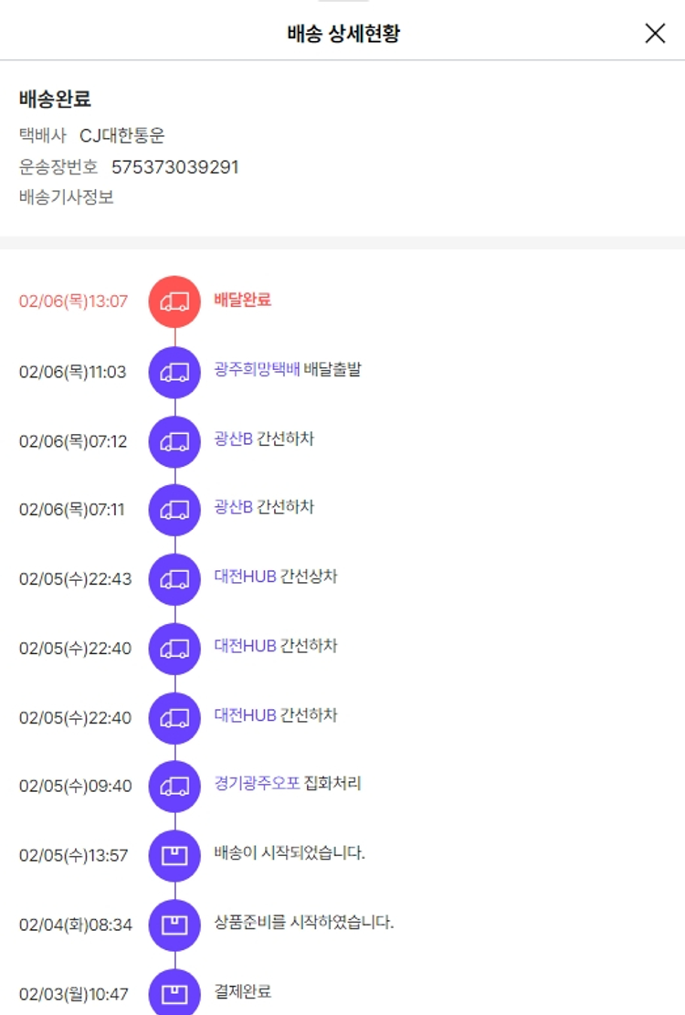 기부자님이 사용한 기부포인트 5,050원, 가격상승분 90원, 100원 미만 지원금 80원, 결제 수수료 15,465원, 기타 사업비는 행복나눔재단이 부담했습니다. (기부후기 발송시점에 최종 업데이트 됩니다.) 실제 쇼핑몰에서 확인되는 배송현황을 캡처한 내용입니다. 실시간 자료와는 차이가 있을 수 있습니다.