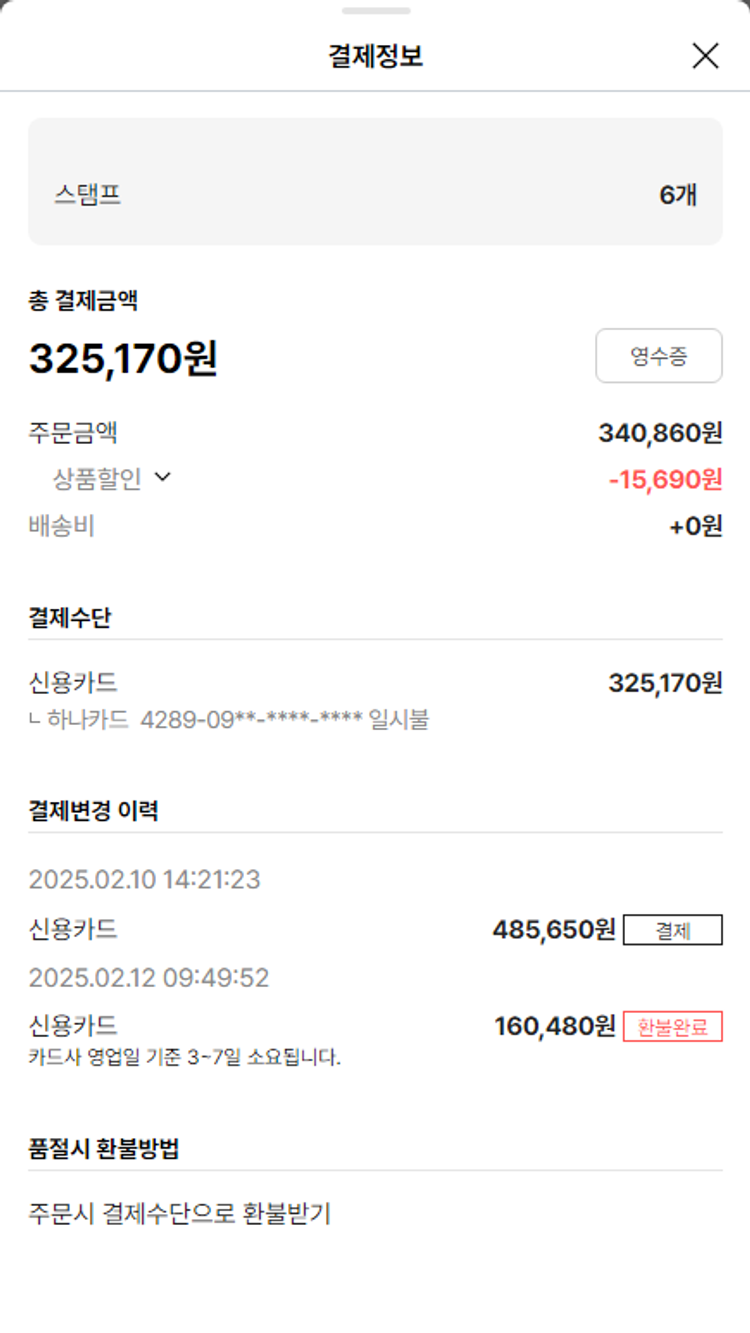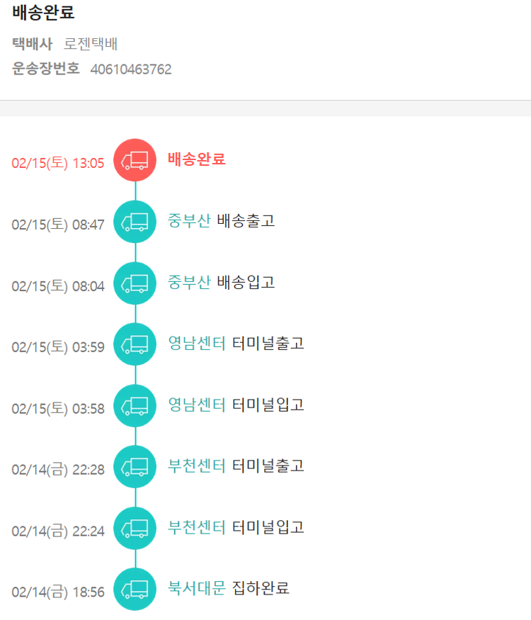 기부자님이 사용한 기부포인트 3,300원, 가격상승분 5,550원, 100원 미만 지원금 40원, 결제 수수료 12,614원, 기타 사업비는 행복나눔재단이 부담했습니다. (기부후기 발송시점에 최종 업데이트 됩니다.) 주문 상품 중 품절 발생하여 2025-02-13 재주문하였습니다. 실제 쇼핑몰에서 확인되는 배송현황을 캡처한 내용입니다. 실시간 자료와는 차이가 있을 수 있습니다.