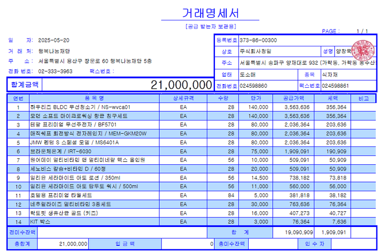 * 배송비 등 추가비용 발생시 행복나눔재단 이 부담합니다.