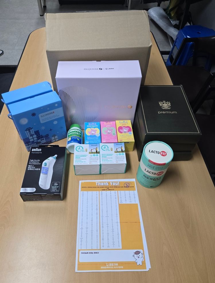 1. 기부금품 사진 2. 대표사진 (물품 + 수혜자 손 + 기부자명단 등)