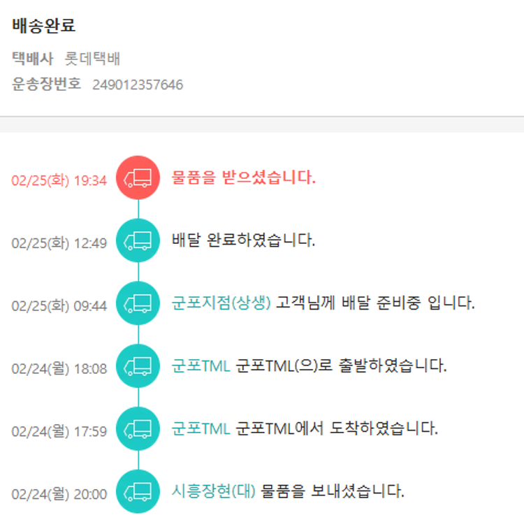 기부자님이 사용한 기부포인트 3,000원, 가격상승분 6,480원, 100원 미만 지원금 18원, 결제 수수료 11,898원, 기타 사업비는 행복나눔재단이 부담했습니다. (기부후기 발송시점에 최종 업데이트 됩니다.) 실제 쇼핑몰에서 확인되는 배송현황을 캡처한 내용입니다. 실시간 자료와는 차이가 있을 수 있습니다.