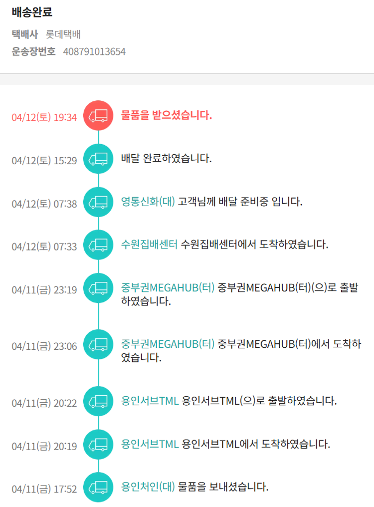 기부자님이 사용한 기부포인트 100원, 물품배송비 3,000원, 가격상승분 2,600원, 100원 미만 지원금 10원, 결제 수수료 17,777원, 기타 사업비는 행복나눔재단이 부담했습니다. (기부후기 발송시점에 최종 업데이트 됩니다.) 실제 쇼핑몰에서 확인되는 배송현황을 캡처한 내용입니다. 실시간 자료와는 차이가 있을 수 있습니다.