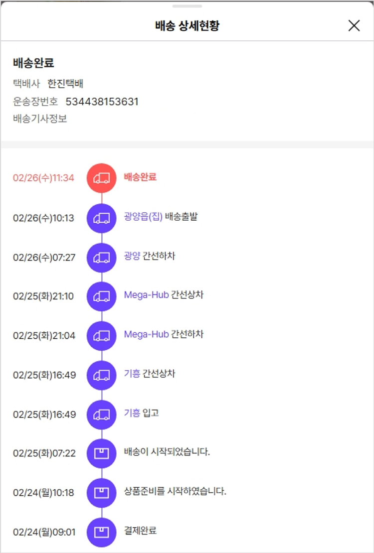 기부자님이 사용한 기부포인트 4,600원, 물품배송비 3,000원, 가격상승분 420원, 100원 미만 지원금 60원, 결제 수수료 11,980원, 기타 사업비는 행복나눔재단이 부담했습니다. (기부후기 발송시점에 최종 업데이트 됩니다.) 실제 쇼핑몰에서 확인되는 배송현황을 캡처한 내용입니다. 실시간 자료와는 차이가 있을 수 있습니다.