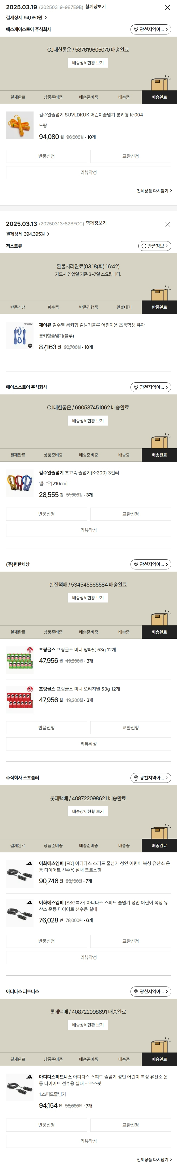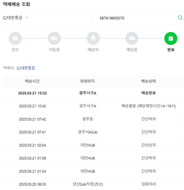 기부자님이 사용한 기부포인트 20,100원, 물품배송비 9,000원, 가격상승분 14,893원, 100원 미만 지원금 82원, 결제 수수료 12,366원, 기타 사업비는 행복나눔재단이 부담했습니다. (기부후기 발송시점에 최종 업데이트 됩니다.) 상품 주문 건 중 품절 발생하여 2025-03-19 재주문하였습니다. 실제 쇼핑몰에서 확인되는 배송현황을 캡처한 내용입니다. 실시간 자료와는 차이가 있을 수 있습니다.
