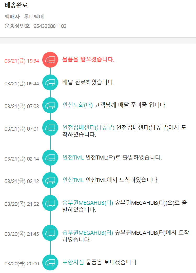 기부자님이 사용한 기부포인트 7,000원, 가격상승분 16,836원, 100원 미만 지원금 84원, 결제 수수료 11,038원, 기타 사업비는 행복나눔재단이 부담했습니다. (기부후기 발송시점에 최종 업데이트 됩니다.) 실제 쇼핑몰에서 확인되는 배송현황을 캡처한 내용입니다. 실시간 자료와는 차이가 있을 수 있습니다.