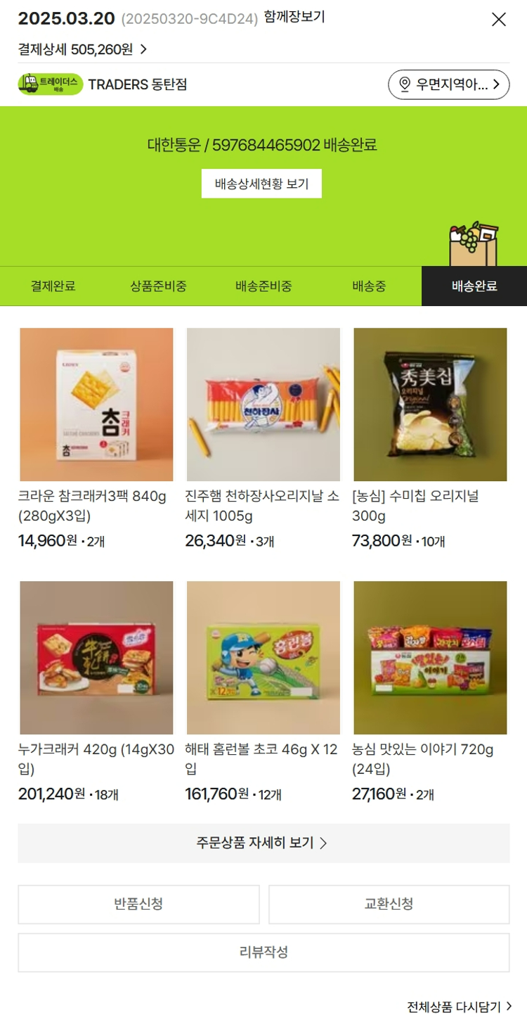 가격상승분 5,540원, 100원 미만 지원금 20원, 결제 수수료 11,289원, 기타 사업비는 행복나눔재단이 부담했습니다. (기부후기 발송시점에 최종 업데이트 됩니다.) 실제 쇼핑몰에서 확인되는 배송현황을 캡처한 내용입니다. 실시간 자료와는 차이가 있을 수 있습니다.