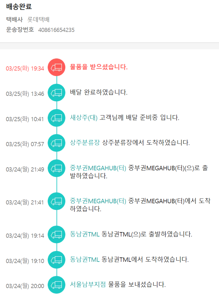 기부자님이 사용한 기부포인트 1,000원, 가격상승분 5,390원, 100원 미만 지원금 20원, 결제 수수료 11,117원, 기타 사업비는 행복나눔재단이 부담했습니다. (기부후기 발송시점에 최종 업데이트 됩니다.) 실제 쇼핑몰에서 확인되는 배송현황을 캡처한 내용입니다. 실시간 자료와는 차이가 있을 수 있습니다.