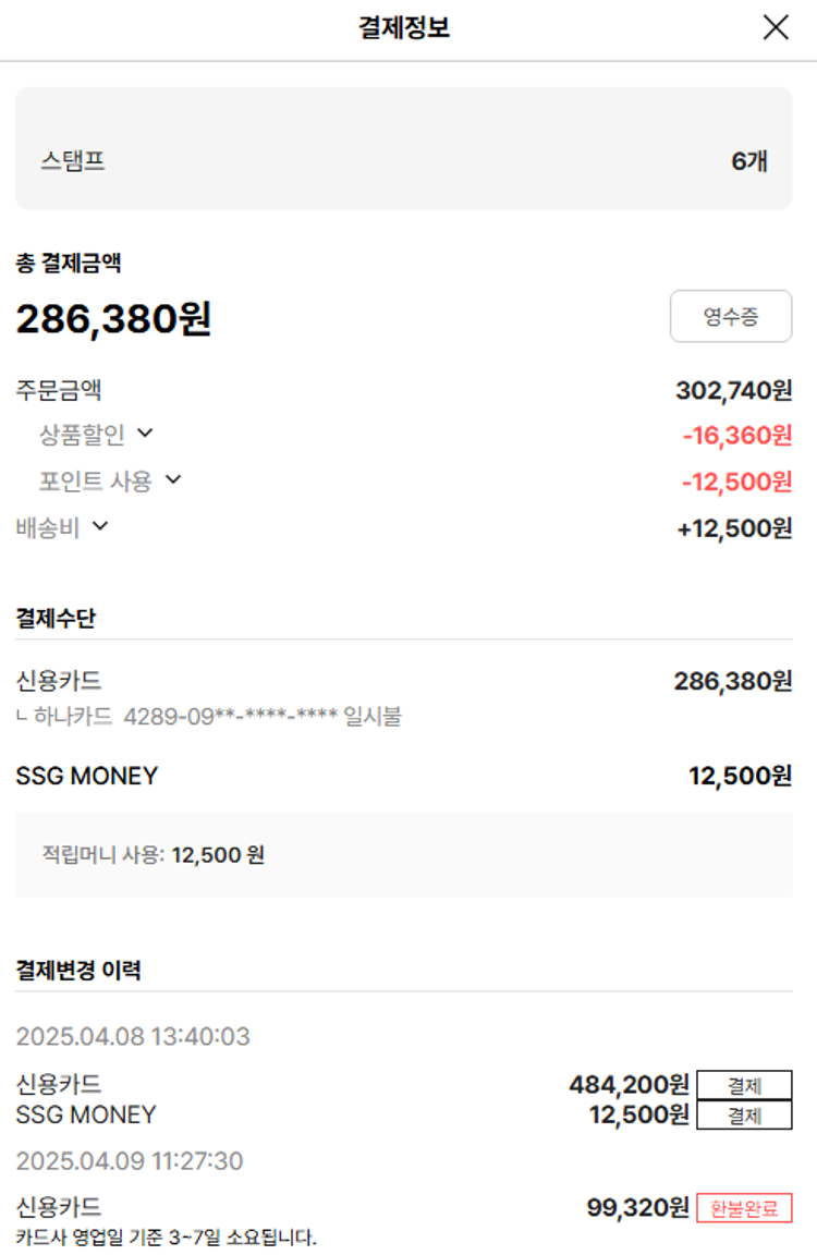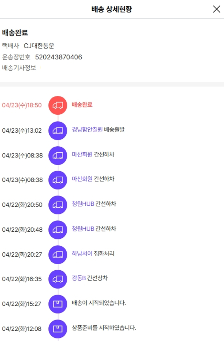 기부자님이 사용한 기부포인트 9,250원, 물품배송비 6,500원, 가격상승분 8,840원, 100원 미만 지원금 30원, SSG 머니 12,500포인트, 결제 수수료 10,872원, 기타 사업비는 행복나눔재단이 부담했습니다. (기부후기 발송시점에 최종 업데이트 됩니다.) 상품 주문 건 중 품절 및 차액 발생하여 2025-04-22 재주문하였습니다. 실제 쇼핑몰에서 확인되는 배송현황을 캡처한 내용입니다. 실시간 자료와는 차이가 있을 수 있습니다.