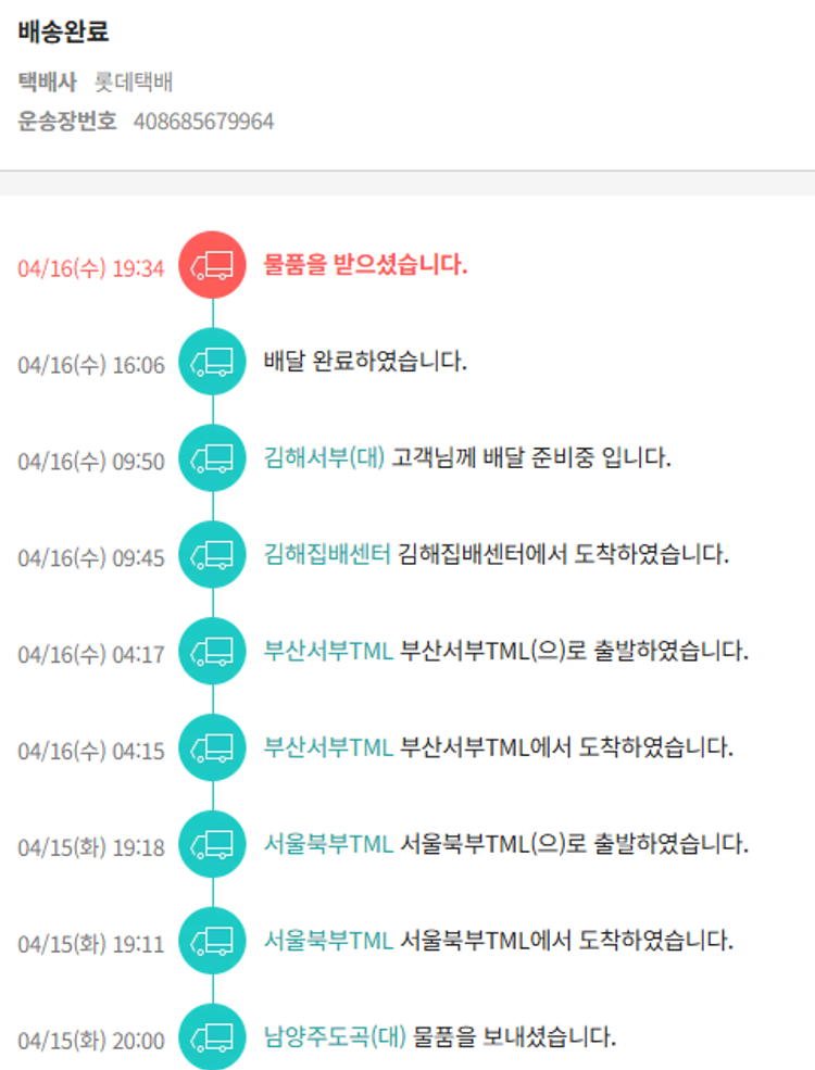 기부자님이 사용한 기부포인트 4,700원, 가격상승분 7,575원, 100원 미만 지원금 85원, SSG 머니 19,000포인트, 결제 수수료 10,499원, 기타 사업비는 행복나눔재단이 부담했습니다. (기부후기 발송시점에 최종 업데이트 됩니다.) 상품 주문 건 중 품절 발생하여 2025-04-11 재주문하였습니다. 실제 쇼핑몰에서 확인되는 배송현황을 캡처한 내용입니다. 실시간 자료와는 차이가 있을 수 있습니다.