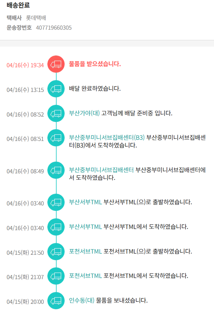 기부자님이 사용한 기부포인트 19,600원, 가격상승분 3,290원, 100원 미만 지원금 40원, 결제 수수료 10,768원, 기타 사업비는 행복나눔재단이 부담했습니다. (기부후기 발송시점에 최종 업데이트 됩니다.) 실제 쇼핑몰에서 확인되는 배송현황을 캡처한 내용입니다. 실시간 자료와는 차이가 있을 수 있습니다.
