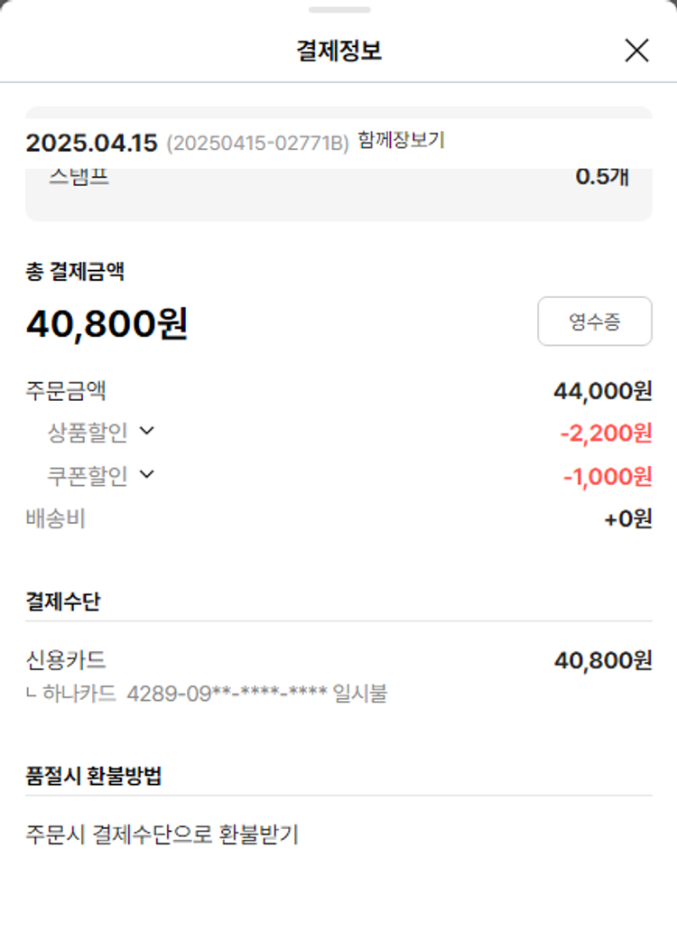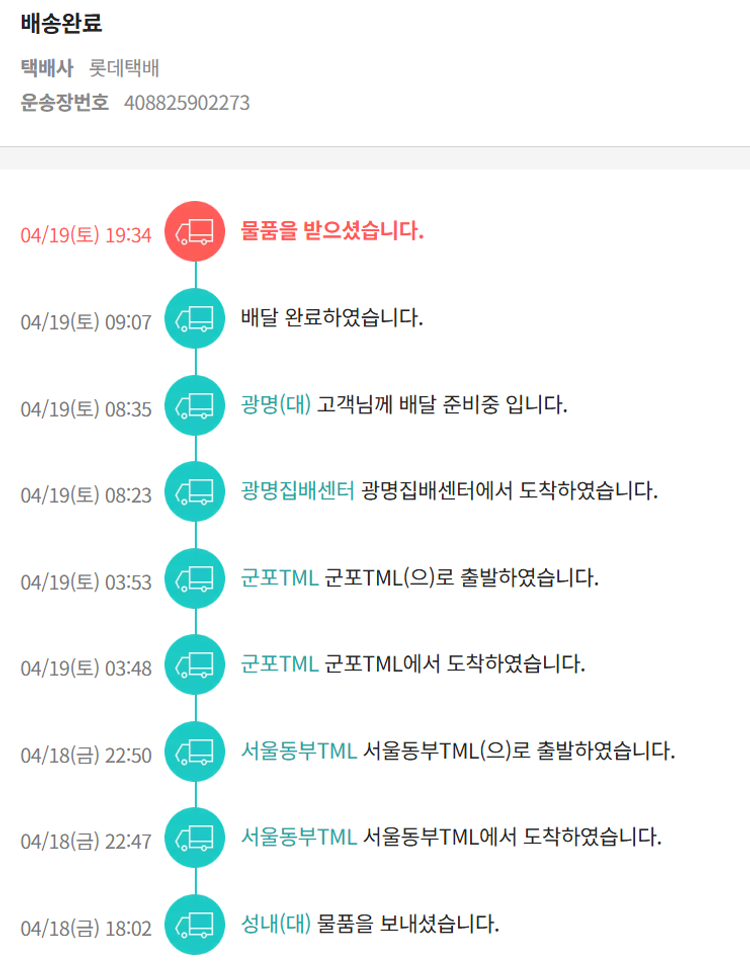 기부자님이 사용한 기부포인트 3,100원, 물품배송비 6,000원, 가격상승분 10,240원, 100원 미만 지원금 50원, 결제 수수료 11,462원, 기타 사업비는 행복나눔재단이 부담했습니다. (기부후기 발송시점에 최종 업데이트 됩니다.) 상품 주문 건 중 품절 발생하여 2025-04-17 재주문하였습니다. 실제 쇼핑몰에서 확인되는 배송현황을 캡처한 내용입니다. 실시간 자료와는 차이가 있을 수 있습니다.