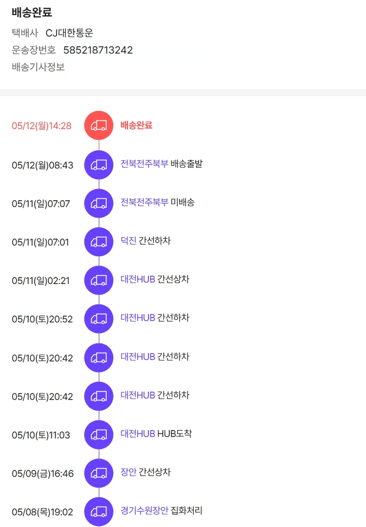 가격상승분 5,840원, 100원 미만 지원금 30원, 결제 수수료 11,797원, 기타 사업비는 행복나눔재단이 부담했습니다. (기부후기 발송시점에 최종 업데이트 됩니다.) 실제 쇼핑몰에서 확인되는 배송현황을 캡처한 내용입니다. 실시간 자료와는 차이가 있을 수 있습니다.