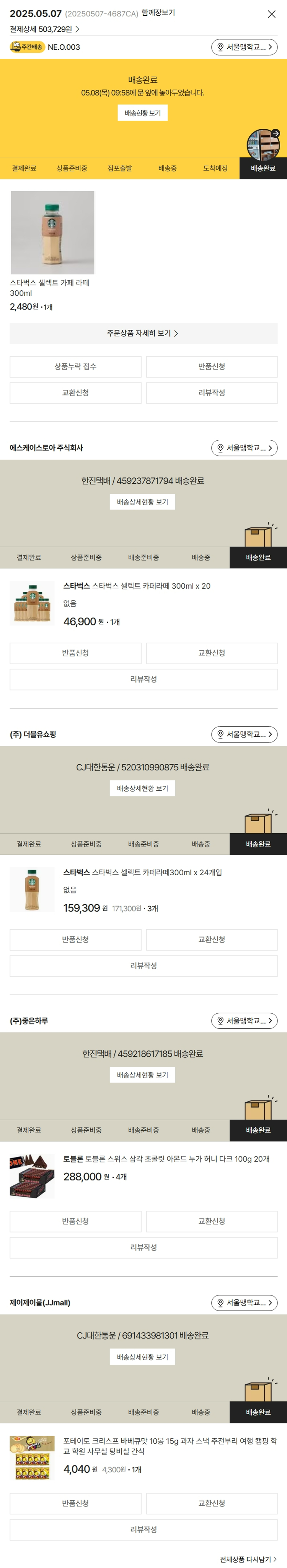 기부자님이 사용한 기부포인트 18,400원, 물품배송비 3,000원, 가격상승분 4,040원, 100원 미만 지원금 89원, 결제 수수료 11,215원, 기타 사업비는 행복나눔재단이 부담했습니다. (기부후기 발송시점에 최종 업데이트 됩니다.) 실제 쇼핑몰에서 확인되는 배송현황을 캡처한 내용입니다. 실시간 자료와는 차이가 있을 수 있습니다.