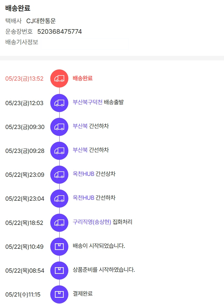 기부자님이 사용한 기부포인트 1,000원, 가격상승분 2,821원, 100원 미만 지원금 70원, 결제 수수료 10,809원, 기타 사업비는 행복나눔재단이 부담했습니다. (기부후기 발송시점에 최종 업데이트 됩니다.) 실제 쇼핑몰에서 확인되는 배송현황을 캡처한 내용입니다. 실시간 자료와는 차이가 있을 수 있습니다.