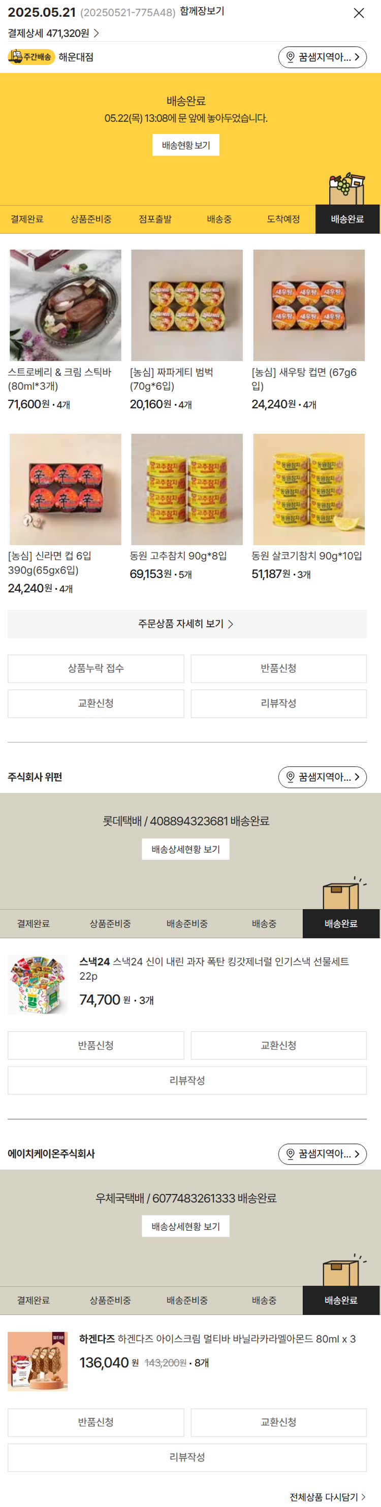 가격상승분 7,240원, 100원 미만 지원금 80원, 결제 수수료 10,259원, 기타 사업비는 행복나눔재단이 부담했습니다. (기부후기 발송시점에 최종 업데이트 됩니다.) 실제 쇼핑몰에서 확인되는 배송현황을 캡처한 내용입니다. 실시간 자료와는 차이가 있을 수 있습니다.