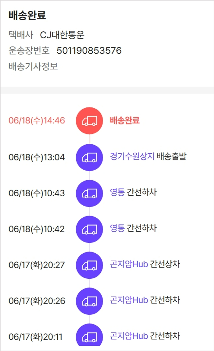 기부자님이 사용한 기부포인트 32,200원, 물품배송비 9,000원, 가격상승분 10,130원, 100원 미만 지원금 50원, 결제 수수료 12,645원, 기타 사업비는 행복나눔재단이 부담했습니다. (기부후기 발송시점에 최종 업데이트 됩니다.) 상품 주문 건 중 품절 발생하여 2025-06-13 재주문하였습니다. 실제 쇼핑몰에서 확인되는 배송현황을 캡처한 내용입니다. 실시간 자료와는 차이가 있을 수 있습니다.