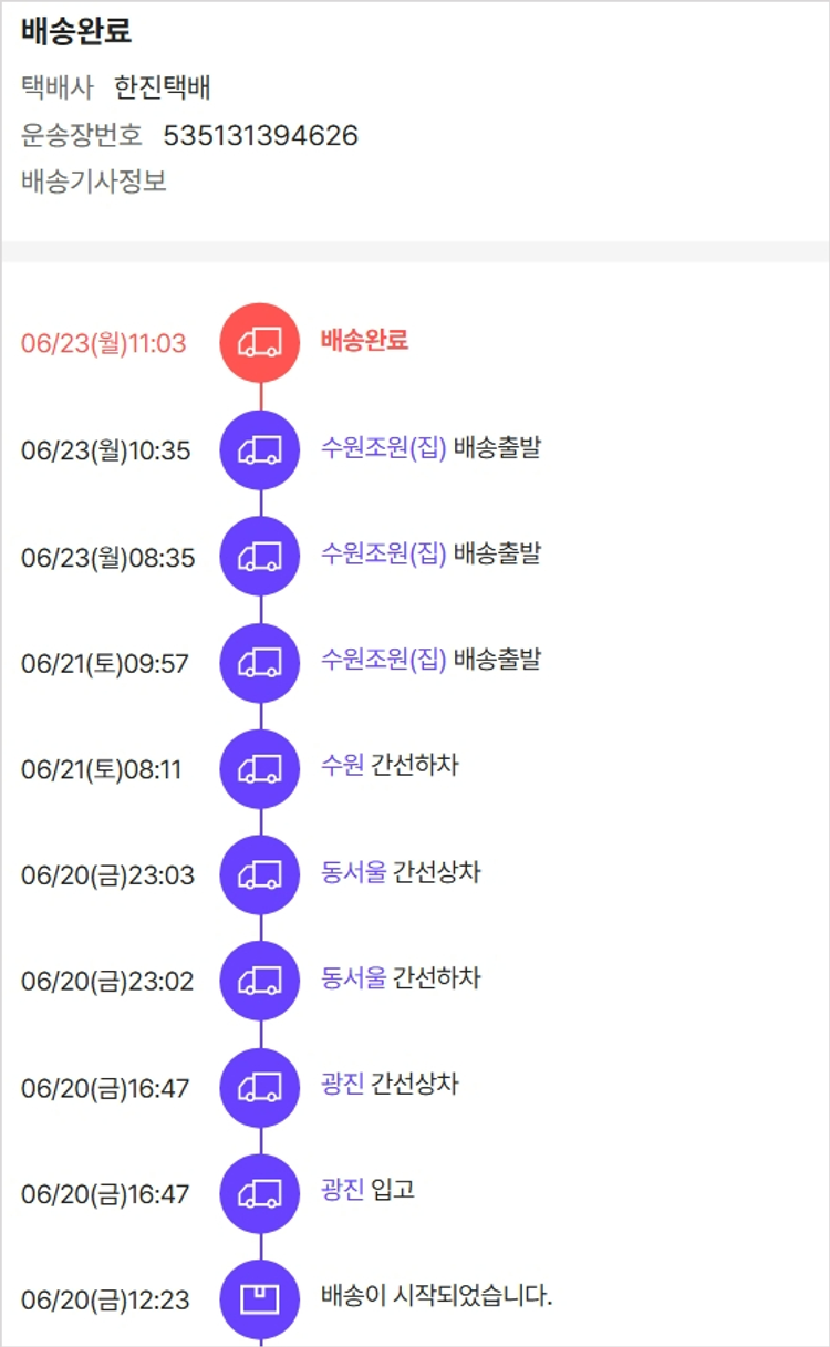 기부자님이 사용한 기부포인트 5,000원, 가격상승분 12,640원, 결제 수수료 11,300원, 기타 사업비는 행복나눔재단이 부담했습니다. (기부후기 발송시점에 최종 업데이트 됩니다.) 실제 쇼핑몰에서 확인되는 배송현황을 캡처한 내용입니다. 실시간 자료와는 차이가 있을 수 있습니다.