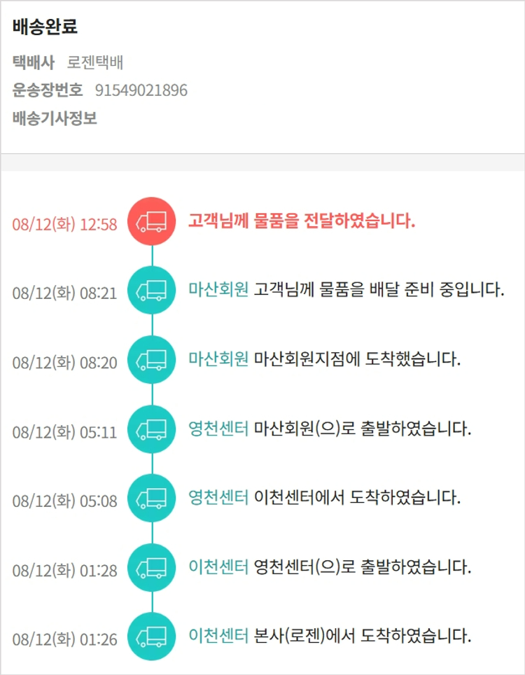 기부자님이 사용한 기부포인트 22,750원, 물품배송비 2,500원, 가격상승분 3,410원, 100원 미만 지원금 50원, 결제 수수료 20,388원, 기타 사업비는 행복나눔재단이 부담했습니다. (기부후기 발송시점에 최종 업데이트 됩니다.) 실제 쇼핑몰에서 확인되는 배송현황을 캡처한 내용입니다. 실시간 자료와는 차이가 있을 수 있습니다.