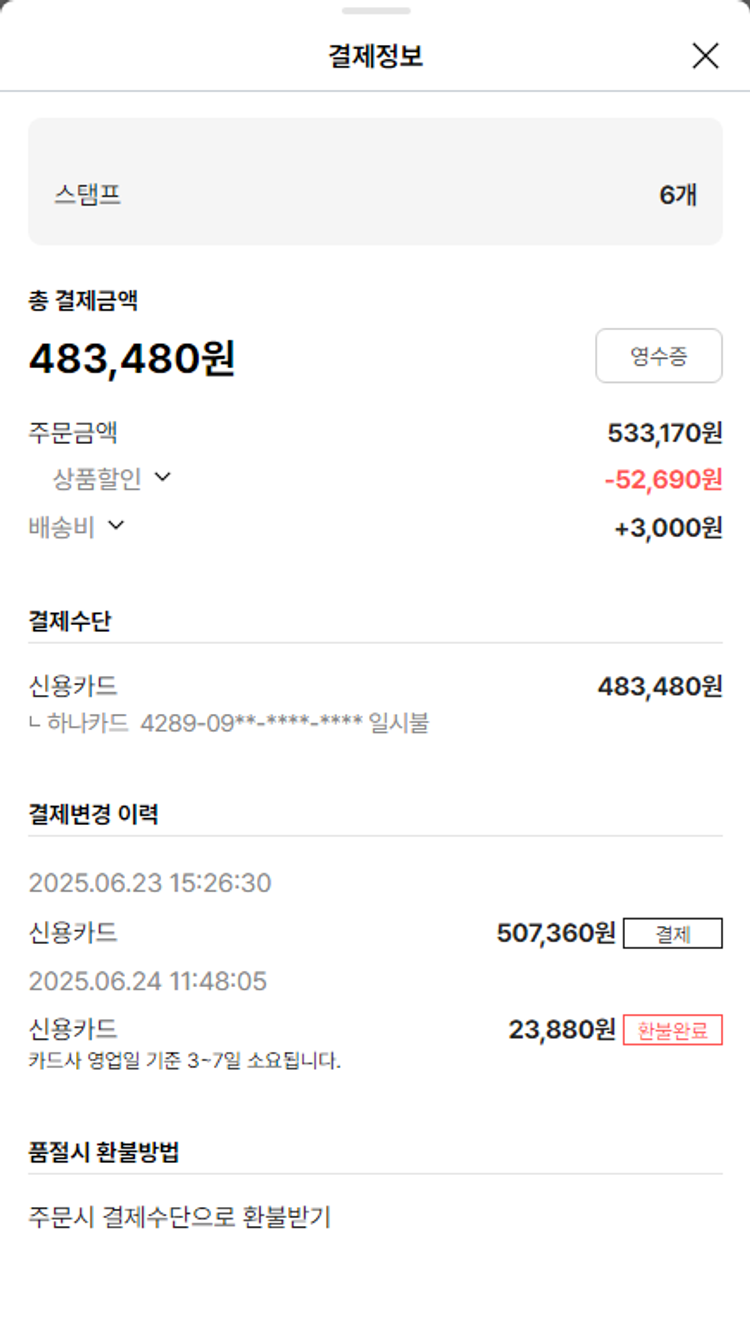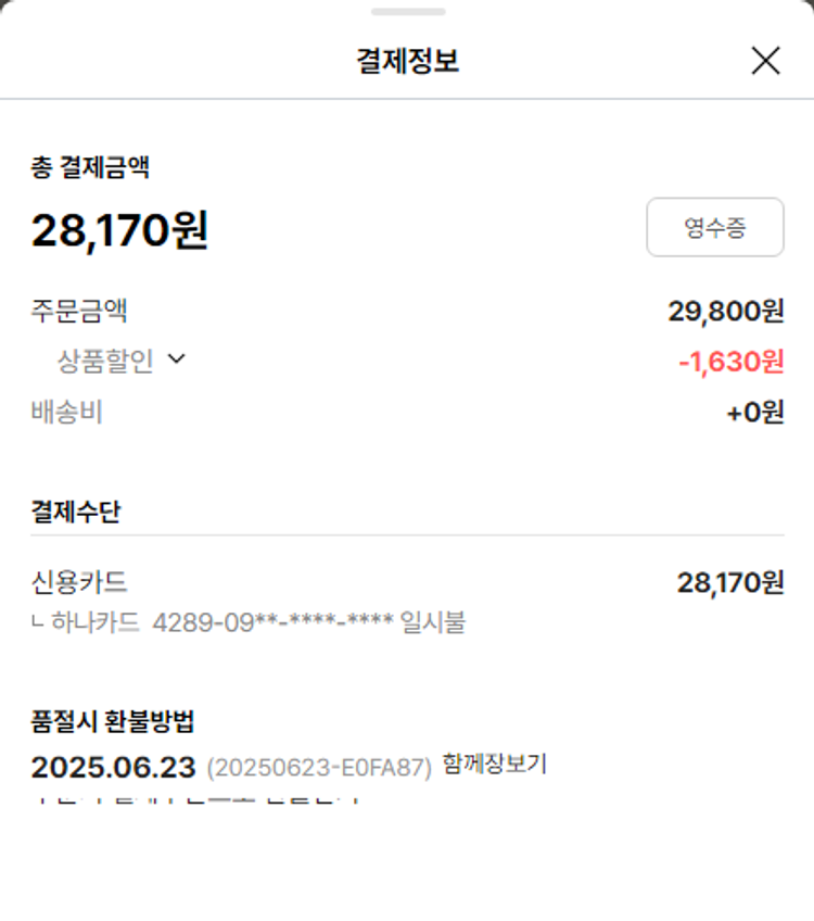 기부자님이 사용한 기부포인트 7,100원, 물품배송비 3,000원, 가격상승분 9,176원, 100원 미만 지원금 74원, 결제 수수료 13,990원, 기타 사업비는 행복나눔재단이 부담했습니다. (기부후기 발송시점에 최종 업데이트 됩니다.) 상품 주문 건 중 품절 발생하여 2025-06-24 재주문하였습니다. 실제 쇼핑몰에서 확인되는 배송현황을 캡처한 내용입니다. 실시간 자료와는 차이가 있을 수 있습니다.